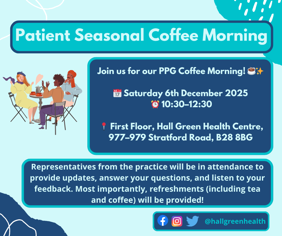 REMINDER – Patient Seasonal Coffee Morning 06/12/2025